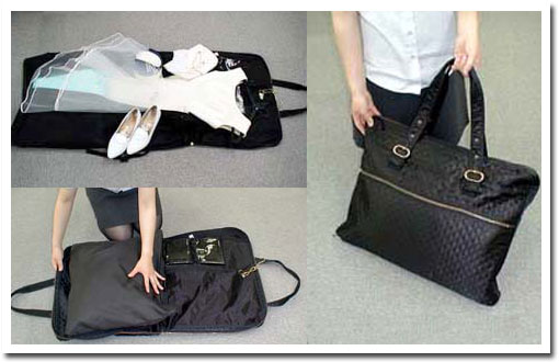 ドレスと小物一式がバッグの中にセットされるので、あれこれと分散しなくて済みます。