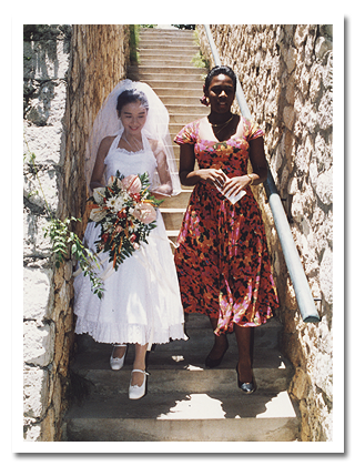 歴史に刻まれた石の文化が育んだ建造物とその風景にはシンプルなドレスが一番映えます。